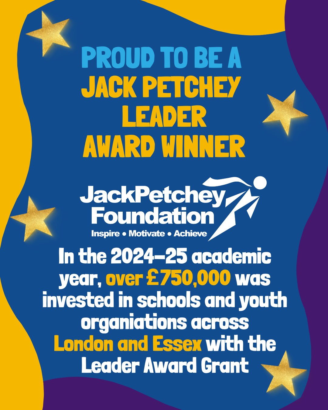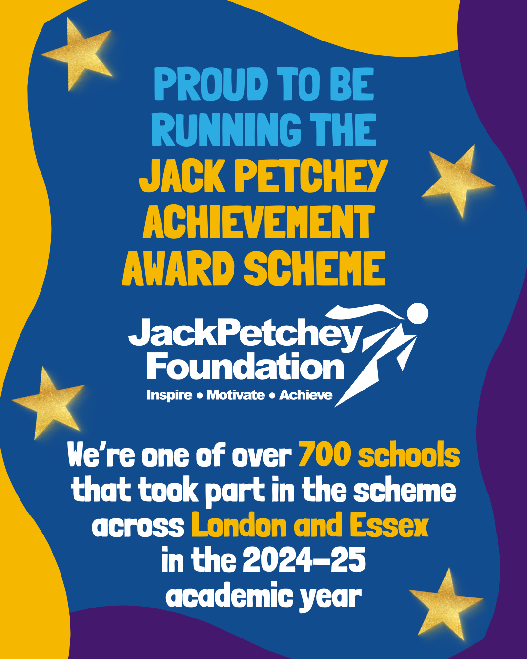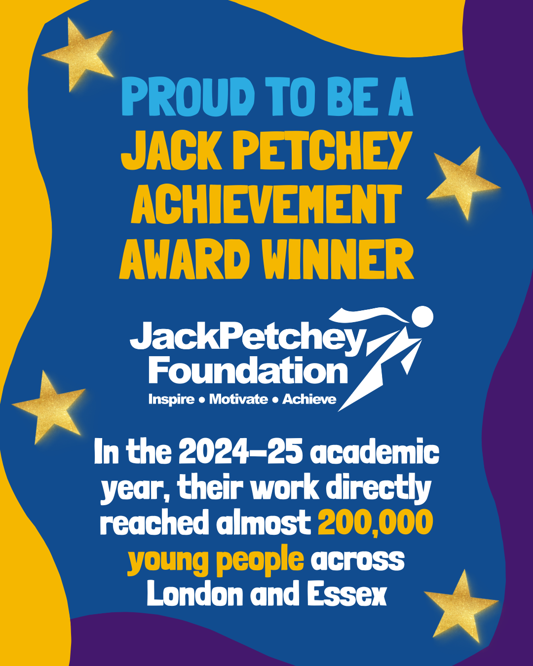 Whether you are a partner or supporter, school or youth organisation (uniform group, sports club etc.) running the Achievement Award Scheme, winner of an Achievement Award, Environmental Award or Leader Award, an intern or part of the Achiever Network, download our shareable graphics and post them on social media to show you are part of our community. Be sure to tag us in your posts: @jackpetcheyfoundation on Instagram and Facebook, @Jack Petchey Foundation on LinkedIn, and @jpfoundation on X so we can see them and celebrate the difference we have made for young people in London and Essex together!